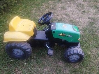 Prodám funkční dětský šlapací zahradní traktůrek. Přívěs k němu má ulomené tažné zařízení, ale někdo zručný jistě opraví. Cena 300 Kč, předání Přišimasy nebo Újezd nad Lesy.