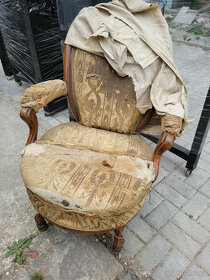 Sada dvou křesel /rokoko/ k renovaci. Cena stanovená znalcem, tak jak leží a běží, nebo 2.500Kč/ks pokud odběr obou kusů.
