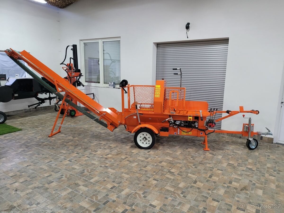 Štípací poloautoma Dabaki - Multiforest WP7G je samostatný stroj určený k výrobě štípaného, palivového dřeva. Je schopen zpracovat kmeny do průměru cca 30 cm. Jedná se o kombinaci řetězové pily a hydraulické štípačky. Pohon je benzínovým motorem o objedmu 420 ccm a výkonu 14 HP s elektrickým starterem. Hydraulické čerpadlo pohání hydromotor řetězové pily a hydraulický, štípací píst. Dodáváme vč. pásového výložníku s max. výklopnou výškou cca 2m. Uvedená cena je vč. DPH a je platná při odběru v areálu Dabaki v Jankově, okres Benešov. Prohlédněte si celou nabídku Dabaki, třeba vás něco zaujme