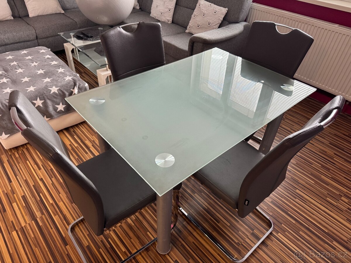 Skleněný stůl a 4 židle