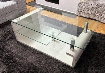 Prodám bílý (vysoký lesk) konferenční skleněný stolek, velmi dobrý stav, bez poškození viz fotky. Výška 42cm, velikost skla 120 x 65cm. Původní cena 4.600,-Kč. Pouze osobní odběr Chomutov.