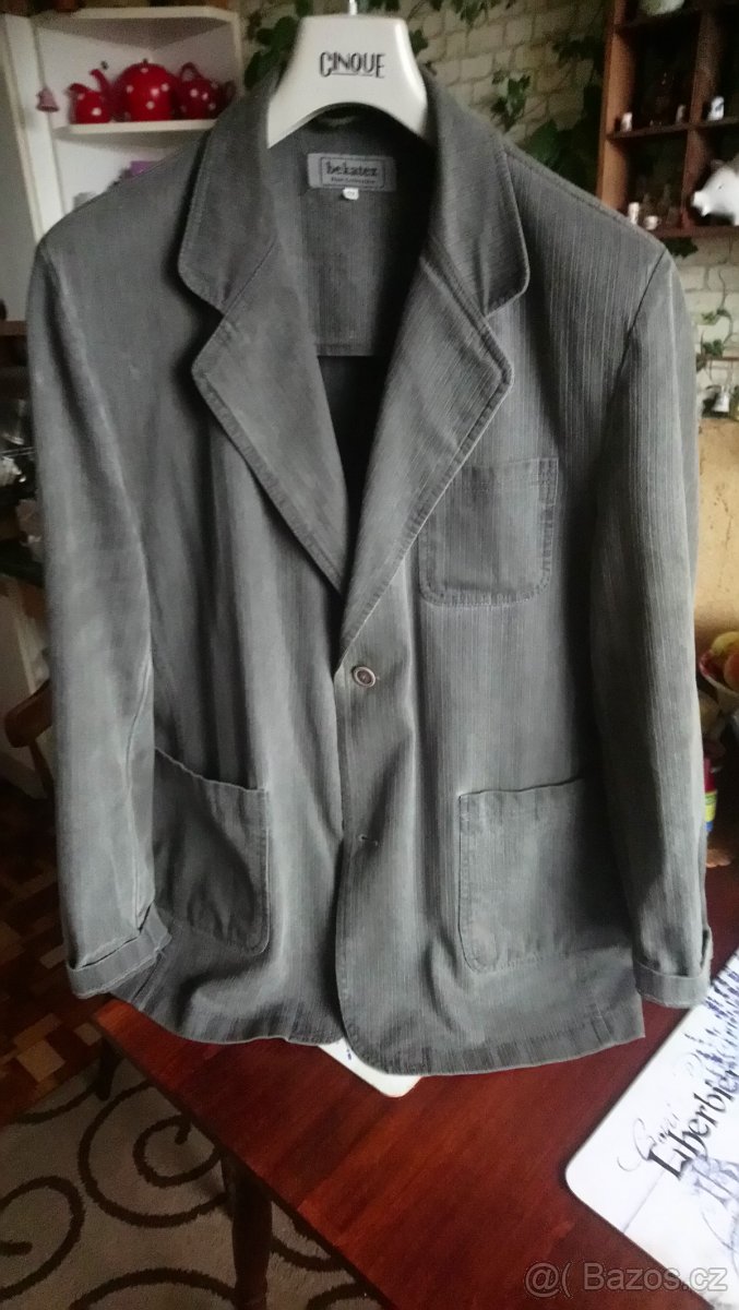 Prodám šedé sako zn. Dekatex. 100% bavlna. Velikost 52 - 56. Délka 90 cm, šířka 60 cm, rukáv 65/45 cm. 4 kapsy. Velmi příjemný materiál. Velmi dobrý stav.