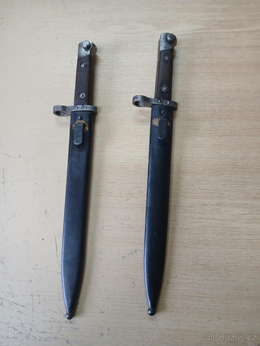 Cena: V textu. Prodám bajonet-bodák Mannlicher M1895. 2 kusy. Cena 2400 Kč/ks Poddůstojník 2900 Kč. Kožený závěsník poškozený, na opravu, kovové poutko na pochvě se trochu viklá.