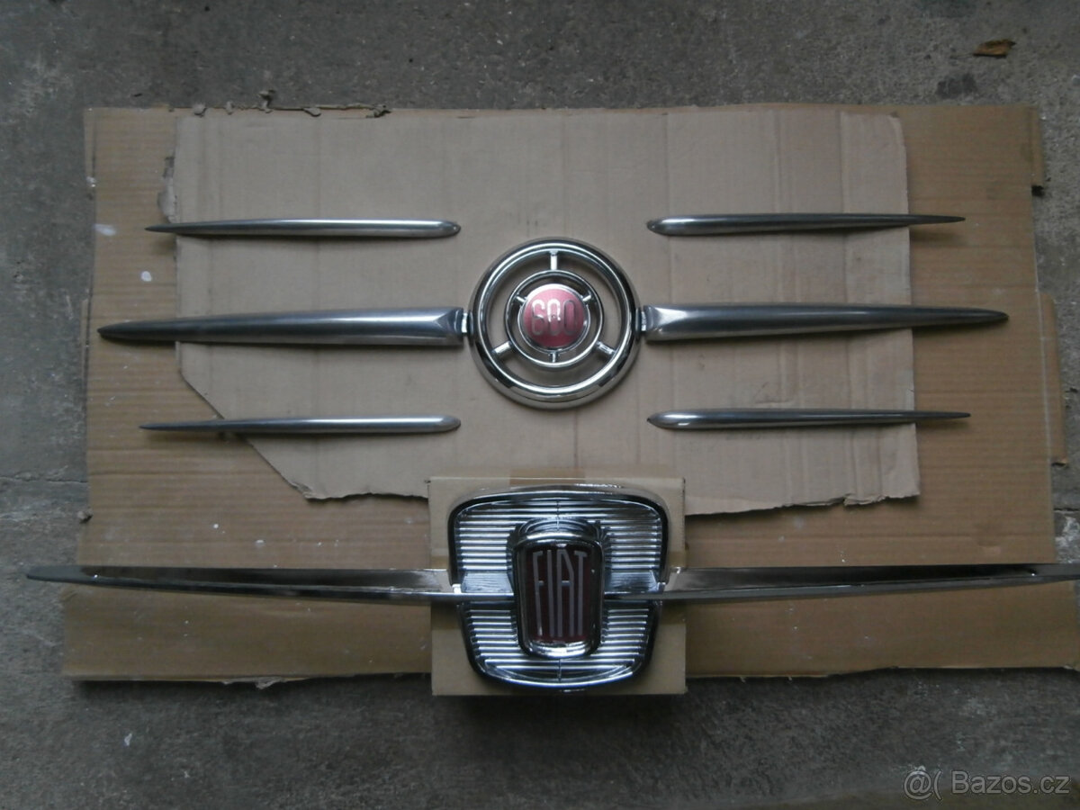 Cena: V textu. Prodam predni znaky na Fiat 600 a 600 D.Spodni znak na prvni fotografii je na model r.v.(66-69),material plast,znak je novy,cena 850kc.Horni znak na prvni fotce je na model r.v.55-65,kulaty znak (material plast)je novy cena 700kc,´´fousy´´ jsou hlinikove,pouzite(vsechny drzacky v poradku),velky 700kc kus,maly 400kc kus.Vse lze prodat po kusech. Inzerat je platny do smazani.