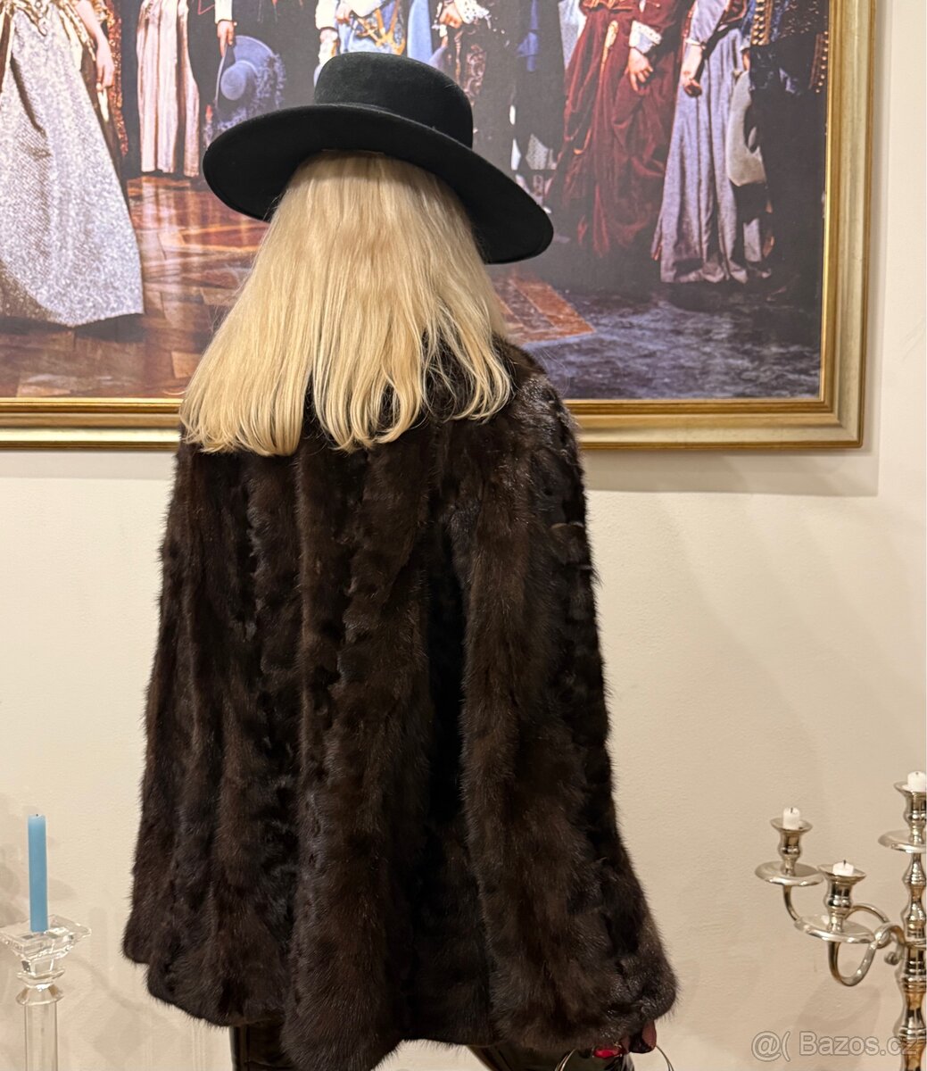 • Barva: hnědá / čokoládová • Material: kožešina (norek) • Střih: mírně do A • Stav: nošený • Velikost: univerzální