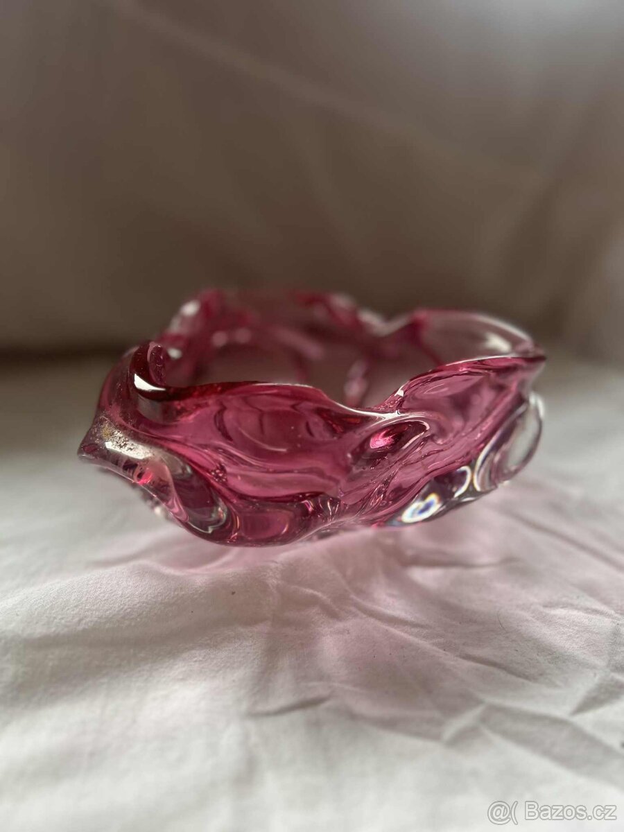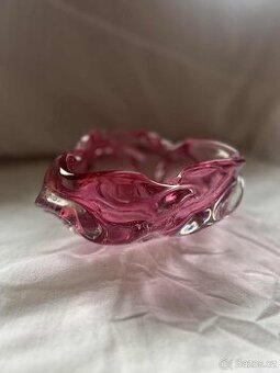 Jedná se o růžovou mísu nebo popelník z hutního skla. Dílo bylo navrženo designérem Josefem Hospodkou pro sklárnu Chřibská. Popis: Materiál: Hutní sklo Barva: Světle růžová nebo brusinková Design: Organický, vlnitý tvar s bublinkami uvnitř skla, typický pro umělecké sklo z poloviny 20. století Původ: Sklárna Chřibská, Československo V-10cm Š-19cm