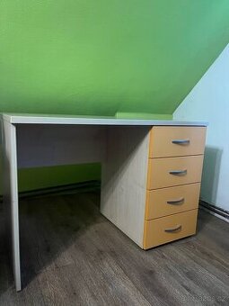 Prodám psací stůl vyrobený na zakázku. Stůl je velmi stabilní a plně funkční. Ideální do dětského pokoje nebo pracovny. Stůl nese běžné známky používání, nic zásadního. Cenu můžeme popřípadě dohodnout - rozumné nabídce se nebráním. Preferuji osobní odběr, případně pomohu s naložením. ✔ zakázková výroba ✔ dostatek úložného prostoru – 4 zásuvky ✔ pevná konstrukce ✔ moderní a nadčasový design ✔ rozměry přizpůsobené běžnému používání (šířka - 60cm, délka - 110cm, výška - 76cm)