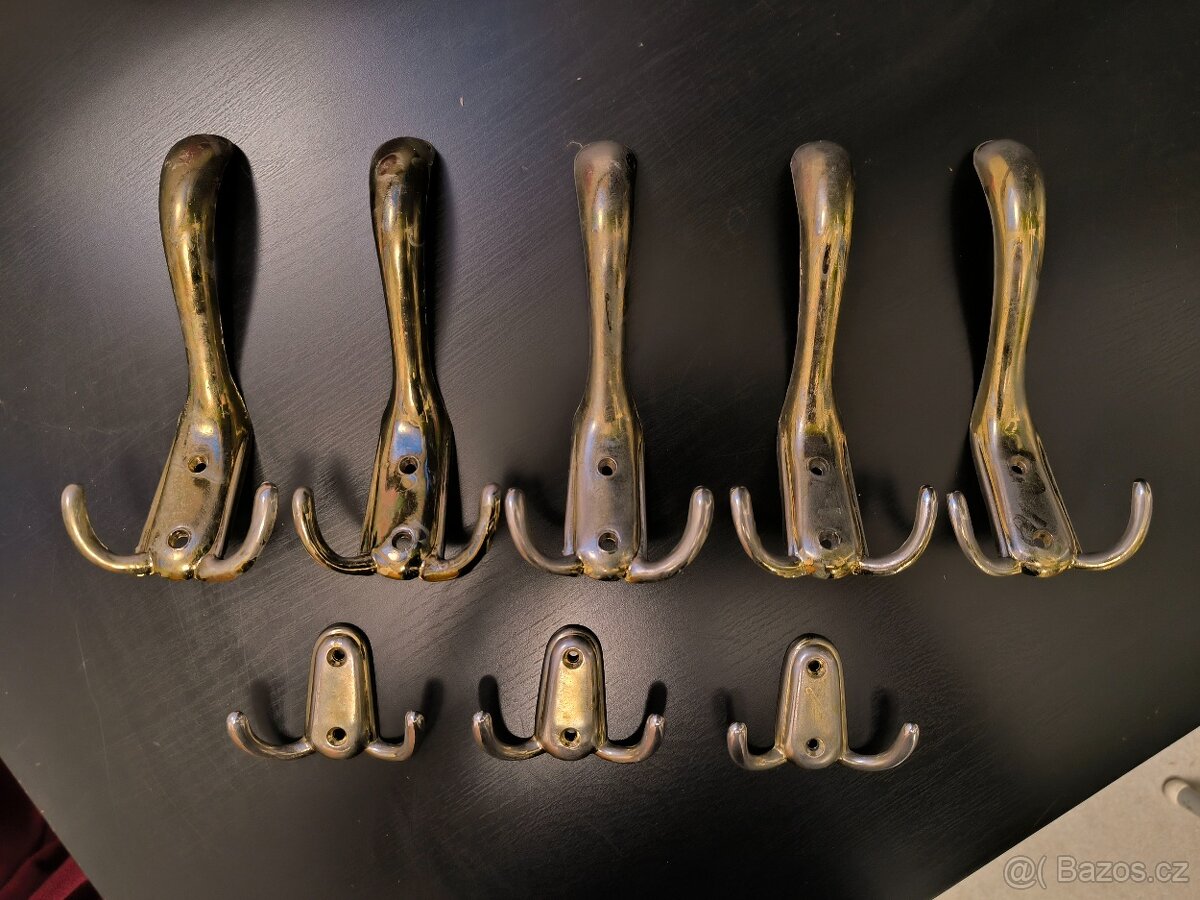 Prodám 5ks trojháčků a 3ks dvojháčků, zlatá patina. Jen jako celek.