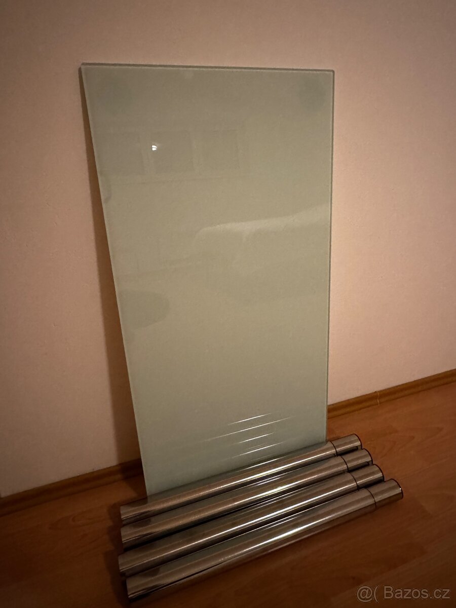 sklenena deska, rozmery 92x55 cm, kovove nohy