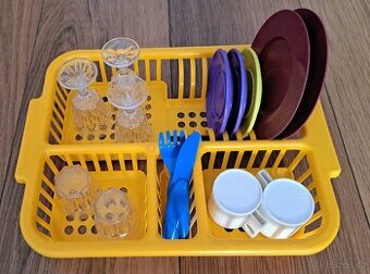 Prodám dětský plastový set nádobí do kuchyňky hraní. Ve velmi dobrém stavu, běžné známky užívání. Sestava: 1x odkapávač 3x sklenka na vysoké noze 2x pohárek 2x hrneček 2x talíř velký 3x talíř menší 1x příbor Cena je za celou sadu. Osobní předání možné na Praze 6 u metra A Petřiny nebo zašlu přes Zásilkovnu nebo Balíkovnu.
