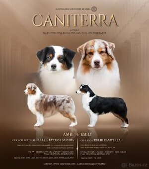 Cena: Dohodou. CHS Caniterra zadá štěňátka s předpokládaným odběrem začátkem května. Narodí se v barvách blue merle nebo black trikolor, s dlouhými ocásky a prostá dědičných vad. Budou vhodná do sportu, nebo pro aktivní rodiny, které hledají parťáka pro život. Samozřejmostí je kupní smlouva, očkovaní, odčervení, čipování, vyšetření očí a chovatelský servis. Více informací o rodičích najdete u nás na webu, případně rádi zodpovíme emailem nebo osobně.