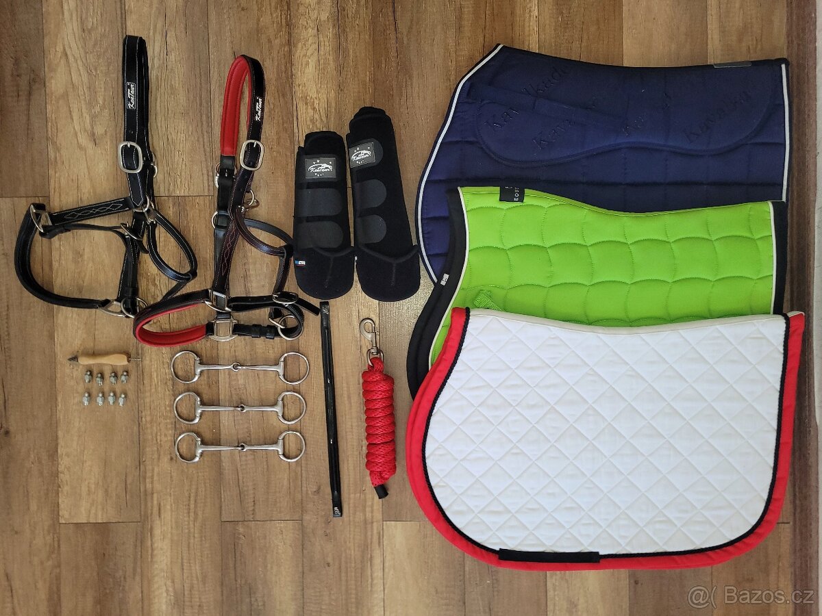 Cena: V textu. Dobrý deň ! Po predají koňa a úplnom ukončení jazdectva, ponúkam posledné jazdecké potreby, ktoré sa ešte nepredali. V prípade záujmu ma prosím kontaktujte na uvedenom čísle cez (SMS alebo E-MAIL). Tmavo modrá všestranná plstenka KAVALKADE (Full) - použitá cca 10-15x / za cenu 40€ Neonovo zelená všestranná plstenka EQUESTRO (Full) - nepoužitá / za cenu 45€ Biela všestranná plstenka B-EQUI (Full) - nepoužitá / za cenu 30€ Čierna kožená ohlávka KENTAUR (Full) - nepoužitá / za cenu 85€ Červená kožená ohlávka KENTAUR (Full) - použitá cca 1.mesiac / za cenu 70€ Čierne neoprenové gamaše KENTAUR (Full) - nepoužité / za cenu 65€ Červené vodítko DASLÖ - nepoužité / za cenu 10€ Čierna kožená čelenka na písmenka USG (Full) - nepoužitá / za cenu 20€ 3x zubadlo oliva DRESSAGE FEEELING (14,5cm) - nepoužité / za cenu 20€/ks Extra tvrdé ozuby do podkov - 4ks nové a 4ks použité 1x / za cenu 30€