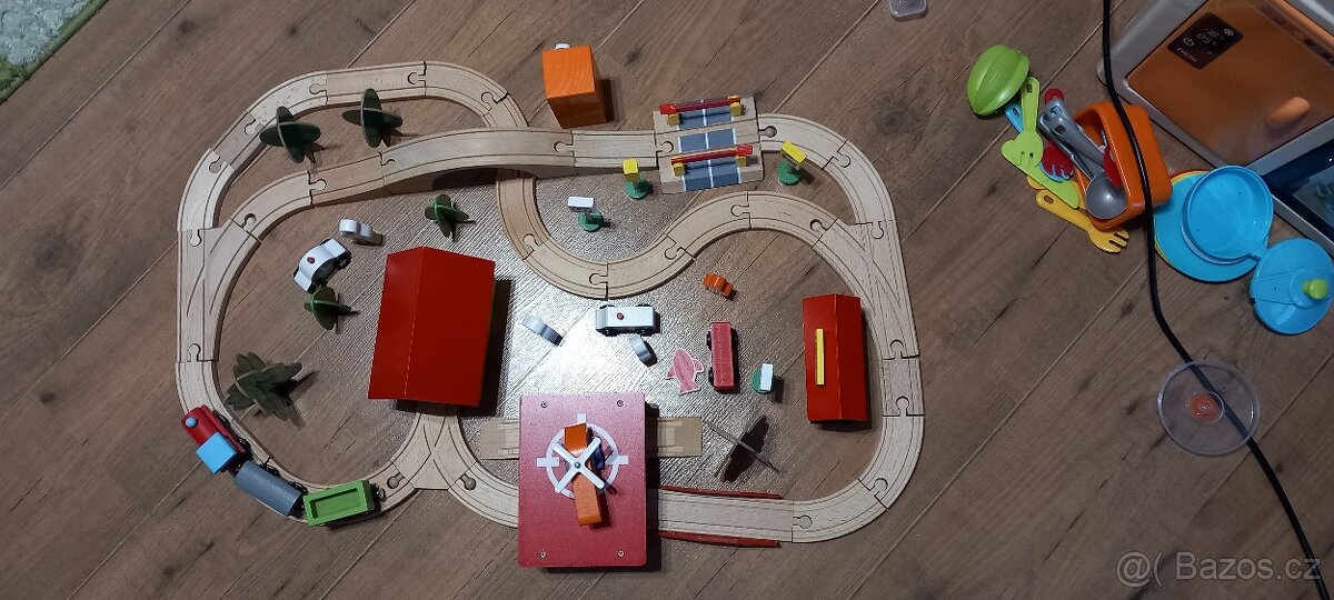 Prodám dřevěné koleje, včetně vláčků, dopravních značek, postaviček a jiných různých prvků. Krabice je mírně poškozená. Možný osobní odběr nebo zašlu.