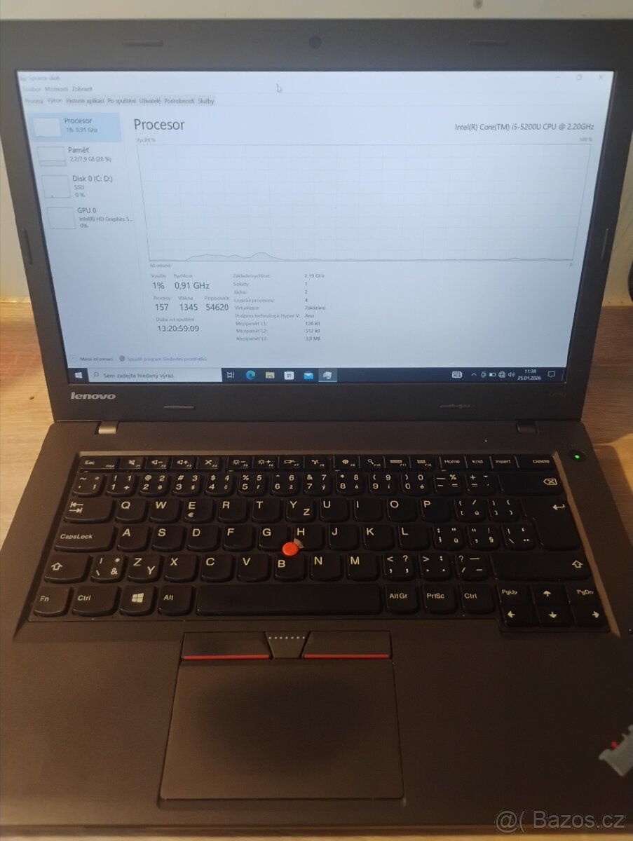 Prodám Lenovo ThinkPad L450 i5-5200U, 8 GB RAM SSD Crucial BX500 480 GB Intel HD Graphics 5500 14", nabíječka Čistá instalace Windows Bez žádných závad. Notebook ve vyborném stavu.