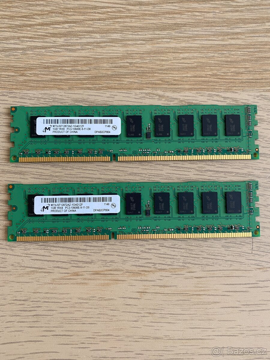 Prodám 2GB kit pamětí pro PC / Workstation / Server. Vhodné pro počítače typu Dell T3500 nebo HP Proliant Microserver, které vyžadují ECC Unbuffered moduly. Před nákupem si ověřte kompatibilitu se svým PC! Kit obsahuje 2x 1GB moduly Specifikace PC3-10600E Osobní převzetí na Praze 4 (Budějovická / Zelený Pruh), zaslání Balíkovnou / Zásilkovnou je samozřejmě také možné. Bez záruky.