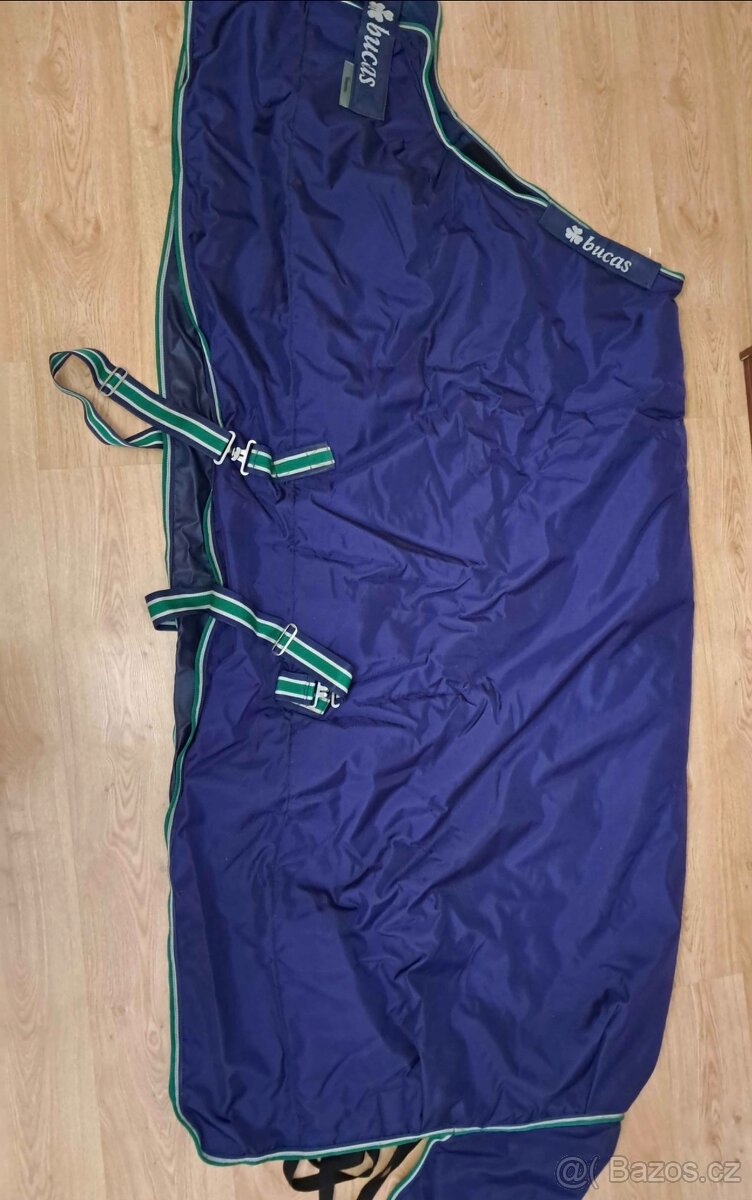 Nepromokavá výběhová termodeka Bucas Smartex Extra s termovýplní 300g. Vhodná pro teploty od +10°C do -20°C. Kvalitní a odolná deka vyrobená z 1680D ballistic nylonu. Spodní vrstva je antibakteriální materiál StayDry s odpocovací funkcí (možnost zadekovat koně ještě vlhkého po práci). Zapínání vepředu obsahuje magnet s ochranným suchým zipem, křížové zapínání pod břichem a mezi zadníma nohama. S krytem ocasu. Na jednom místě opravená viz. foto. Nemá vliv na funkčnost. Deka vypraná a na impregnovaná. Bohužel my už nevyužijeme. https://www.equimall.cz/p/termodeka-vybehova-bucas-smartex-extra#2149
