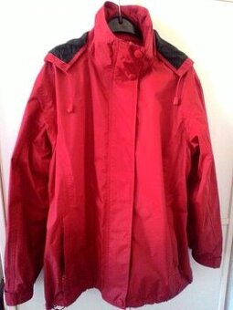 Prodám dámskou sportovní bundu LAMBESTE, je uvedená velikost L, odpovídá spíše M. 100% nylon, s podšívkou a kapucí, srolovatelnou do límce, kapsami na zip, 1 vnitřní na mobil. Délka 68cm, obvod hrudníku 114cm, obvod dolní části 110cm (regulace šířky). Délka rukávu v horní části 58cm, dolní 47cm, horní obvod 50cm, u zápěstí 27cm.