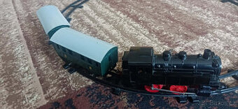Cena: Dohodou. Prodám 70let starý plechový vláček na kolejích o průměru 75cm, délka lokomotivy 20cm + 2 vagónky. Velmi zachovalý,funkční, pohon na plochou baterii