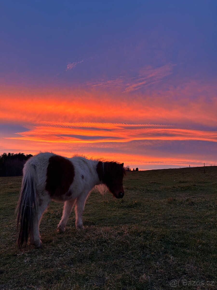 Z důvodu snižování stavu, nabízím hřebečka pony. Cooky bude mít v dubnu 2 roky. Je ošetřován dětmi, klidné a milé povahy. Má zkušenosti toho, co by měl kůň ve dvou letech znát- chůze na vodítku(procházky), sám i s dalšími koňmi, auta, traktory, zvedání nohou, klidné stání na úvaze, box, el.ohradník, přeprava ve vozíku…. V dospělosti výška cca 100cm. V případě zájmu volejte nebo pište SMS/whatsapp.