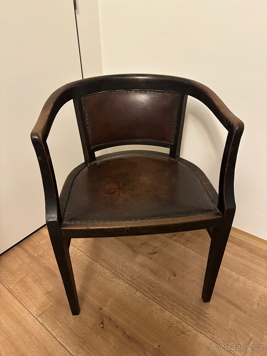 starožitné kožené křeslo z období první republiky v zachovalém stavu s krásnou patinou, nerozviklané cena k jednání