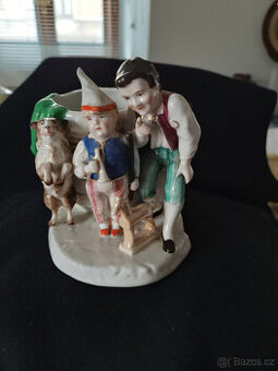 váza s figurkamu, mírně poškozeno ruční malba, výška 13 cm, průměr 13 cm