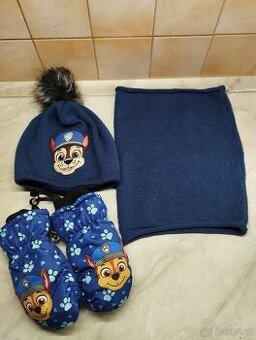 Set čepice, rukavic a nákrčníku s motivem Chase. Rukavice nové,nám byly malé. Přibližně 6- 12 měsíců.