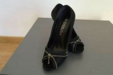 Lodičky s otevřenou špičkou, černé barvy, elegantní - moderní styl, vel. 37, zn. Jennifer, vzaty na 2 akce, na pravé noze škrábnutý podpatek - viz foto