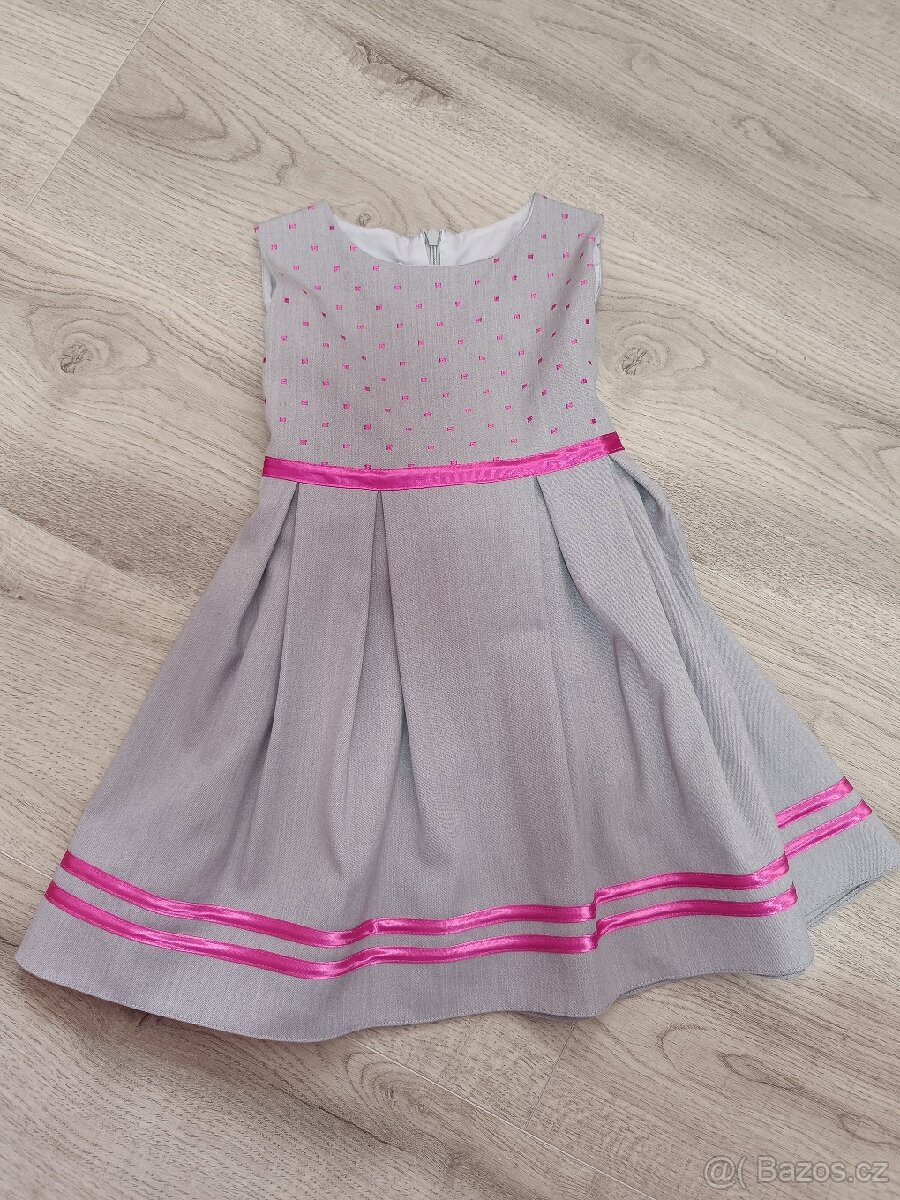 Prodám dívčí šaty vel. 110. Použity 2x, velmi pěkný stav. Osobní předání nebo + pošta.