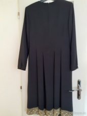 Prodám dámské šaty antracitové barvy. Velikost 44. Šířka ramen=42cm, délka rukávu od ramen=61cm, délka šatů od ramen = cca 108cm. Šaty jsou podšité jemnou látkou, byly jen 1x nošené, jsou jako nové.
