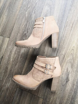 Béžové kožené kotníkové boty