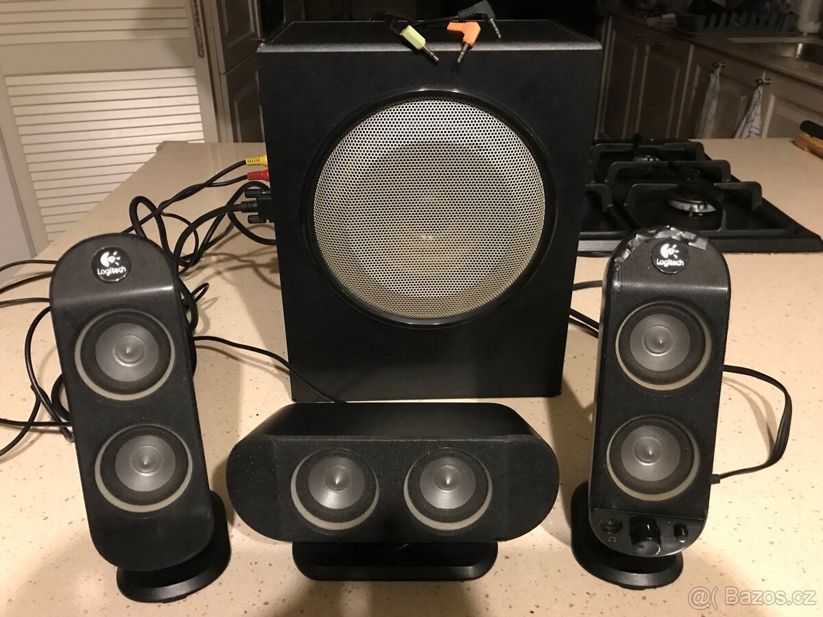 Vynikající aktivní reprosoustava ve funkčním stavu, původně 5.1 (měla i zadní repro, ale ty se ztratily pro stěhování). Jde bez problému provozovat jako stereo nebo 3.1 (nastaví se v PC). Pravý satelit měl shora trochu poškozenou síťku, přelepil jsem to izolepou ale asi by to šlo udělat i hezčeji :) Hraje perfektně, díky samostatné regulaci basu lze vyladit tak, aby jich byl dostatek a zároveň příliš neduněly. Soustavu tvoří subwoofer s dřevěnou ozvučnicí s basreflexem, dva (původně čtyři) satelity a centrální reproduktor z tvrdého plastu osazené vždy dvojicí reproduktorů s technologií FDD2. Na zadní straně subwooferu je vyveden napájecí kabel, čtyři cinchové konektory pro satelity, patnáctipinový konektor na propojení s pravým předním reproduktorem a nastavení basové složky. Ovládací prvky soustavy (vypínač, hlasitost reproduktorů) jsou spolu se světelnou indikací zapnutí a výstupem na sluchátka umístěny na pravém předním reproduktoru ze kterého rovněž vede kabel pro připojení ke zdro