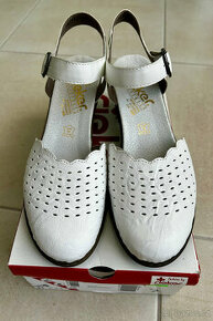Prodám bílé boty s koženou stélkou značky Rieker, nové – nenošené, v původní krabici, velikost 41. Původní cena 1490,-, nyní 690,-. Další informace ráda zašlu na požádání. Občas jezdím do Říčan u Prahy, možno vyzvednout i tam. Inzerát platný do smazání.
