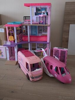 Barbie dům, letadlo, karavan, koně a panenky