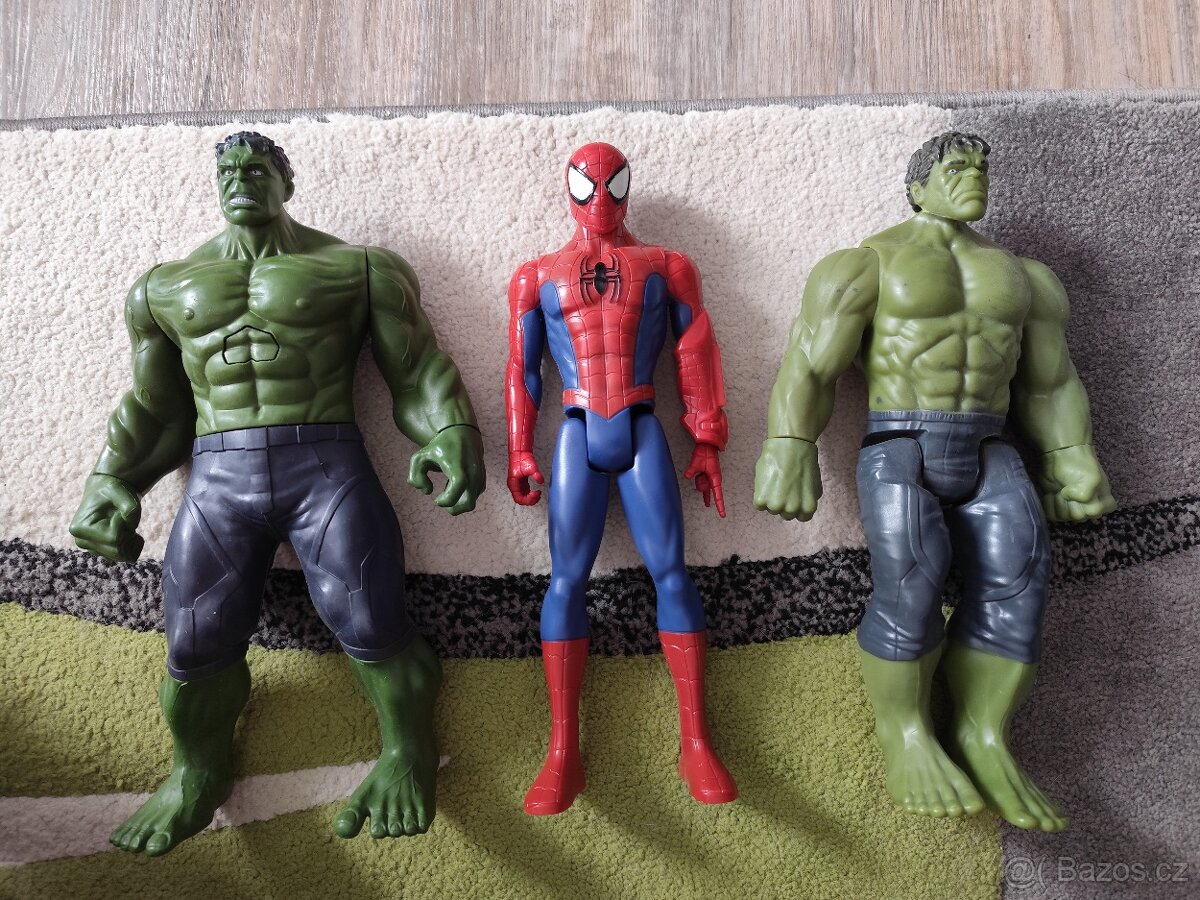 Figurky 30cm Spiderman a 2x Hulk, jeden se zvukem. Cena za všechny.