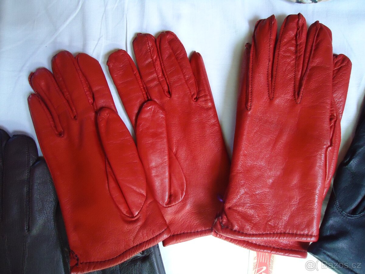 Prodám starší kožené rukavice s podšívkou, nenošené, dámské, celkem 2x. 1x červené - vel. 8, 1x černé - vel. 7. Vyrobeno v Dobříši, cena za 1 pár. Kontakt a informace e.mail (formulář dole), poštovné a balné 100kč. Podívej se i na další moje inzeráty s oblečením..
