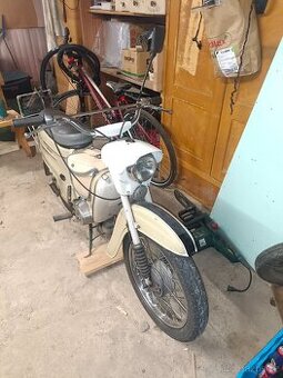 Jawa 21 na prodej. Chybí nahon na tachometr, trochu to chce poladit elektriku, ale jinak slouží věrně. Stk je do srpna 2026. Doklady a pojistka v pořádku. Cena k jednání 30.000,-Kč.