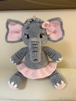 Ručně háčkovaná sloní slečinka, vel. cca 45 cm, z plyšové příze Himalay Dolphin Baby, příjemná na dotek, bezpečnostní oči, plněno dutým kuličkovým vláknem. Mazlíček do postýlek, kamarád na cesty, dekorace dětského pokojíčku, nebo jako dárek pro štěstí. Zasílám přes Zásilkovnu.