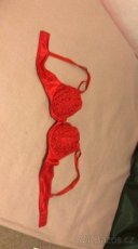 Červená krajková podprsenka La Belle. Vel.80B. Mám v nabidce červene kalhotky vel. XL 60 Kč. Zdarma k nákupu nad 1000 Kč. NEVOLAT.