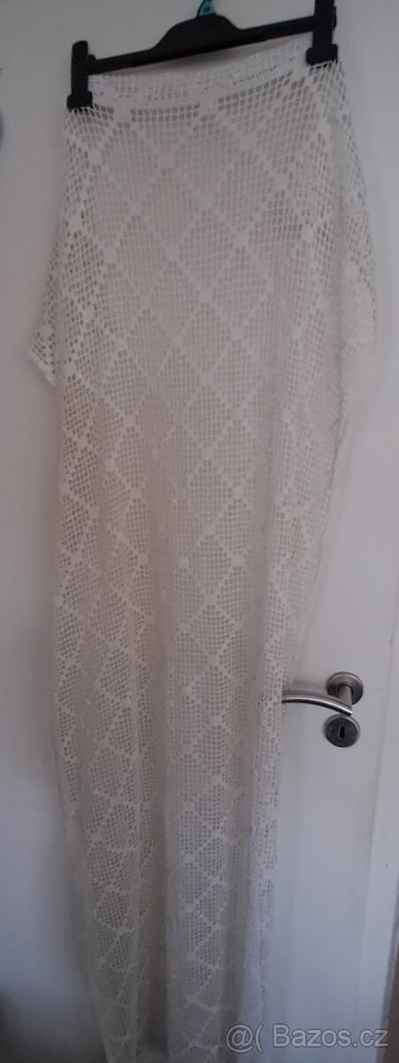 Cena: Dohodou. Háčkovaný úzký "přehoz". Dřív se to dávalo na skleněné dveře. Lze použít jako ubrus, na gauc nebo záclonu....