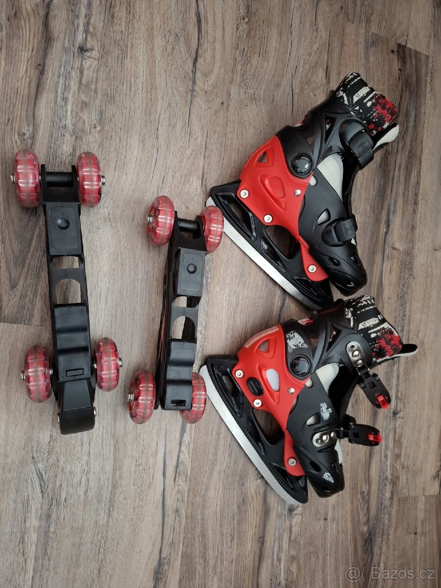 Dětské brusle 2v1 černočervené vel. 33-36 nastavitelné