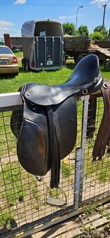Prodám černé kožené všestranné sedlo neznámé značky. Posedlí 17.5, komora širší. Cena 2500,- bez třměnů, se třmeny a třmenovými řemeny 3000,-kč, mohu přidat i podbřišník s gumama, hnědý 120cm, černý 125cm