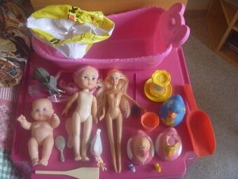 Prodám hračky do vany - mix hraček, růžová vanička s hlavou medvídka, 2 panenky, Barbie, 3 kačenky, malý hrníček, 2 malé hřebínky, zvířátko, atd., dobrý stav. Lze i jednotlivě. Osobní předání v Brně, posílám balíkovnou i zásilkovnou