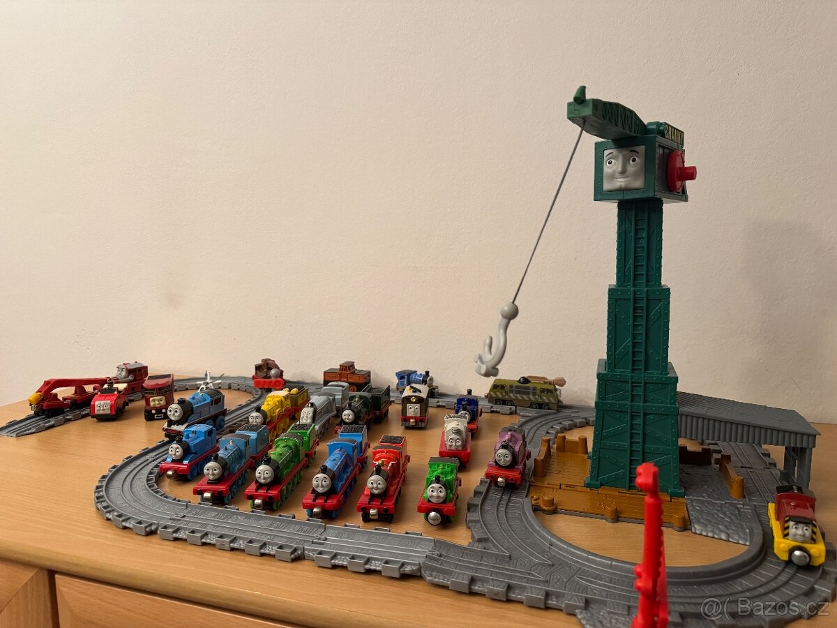 Cena: Dohodou. Prodám sadu mašinka Tomáš Take-n-Play od Fisher Price. Obsahuje spoustu kovových vláčku (Tomáš, Edward, Gordon, Henry, a další) a dopravních prostředků na magnety, jeřáb Cranky, několik kolejí pro menší okruh. Hodně hrané, stav viz foto. Cena bez poštovného, osobní odběr možný v Praze.