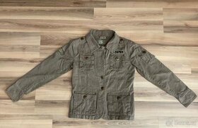 Prodám hnědou džínovou bundu, velikost 164/170. Šířka ramen 42 cm, délka od krku 56 cm, délka včetně límce 61 cm, délka rukávu od ramene 57 cm. Cena: 300 Kč + poštovní
