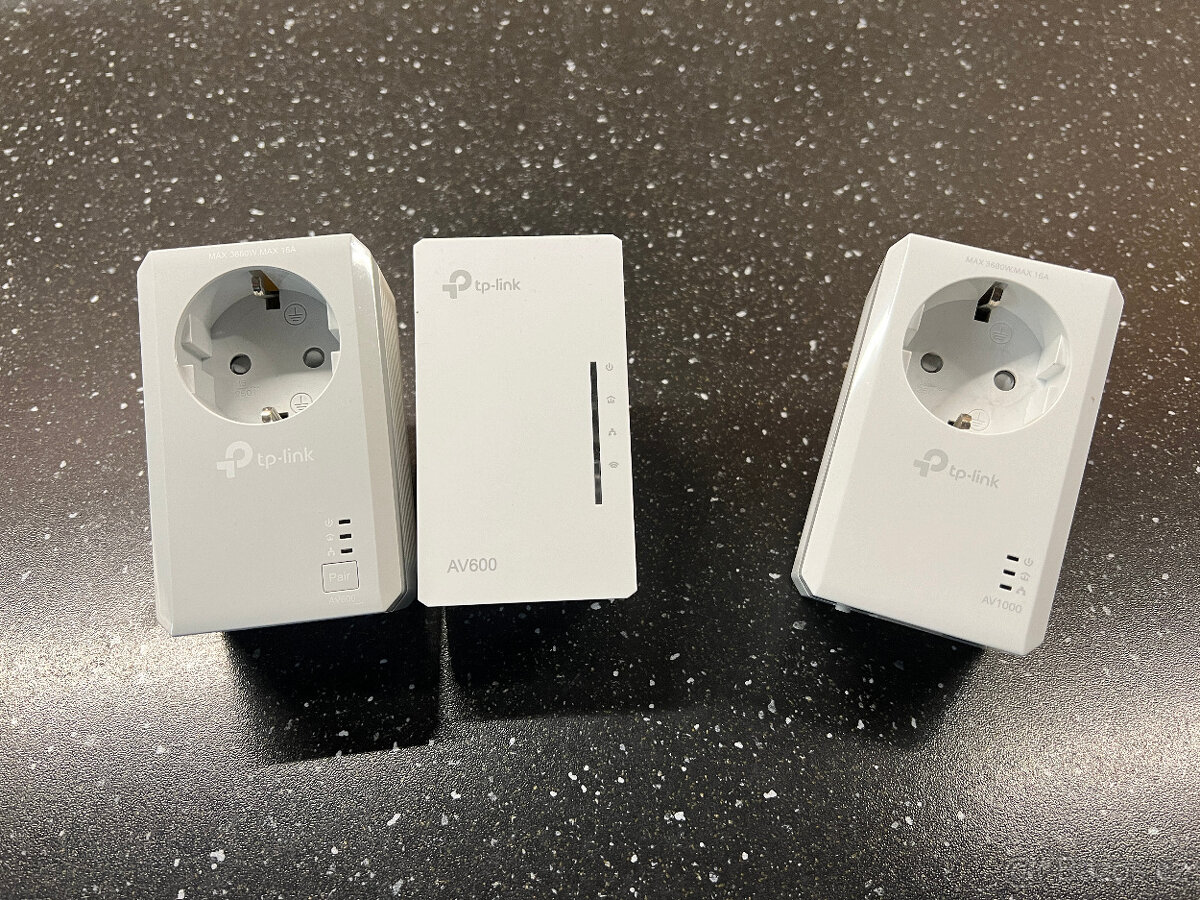 Prodám použité adaptéry pro rozvod LAN a WIFI přes elektrickou síť. Bez tahání nových drátů. Jsou plně funkční. Bez obalu. Jedná se o startovací sadu TL-WPA4226 KIT (obsahuje TL-WPA4220 a TL-PA4020P) a adaptér TL-PA7017P. Funguje na kratší vzdálenosti a na jedné fázi. Možno prodat i na části KIT (1400 Kč)/adaptér (750 Kč). Cena za vše. Možno zaslat balíkem při platbě předem.