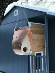 Ručně vyráběné měděné krmítko pro ptáky, dárek pro milovníky ptactva a nadšence do moderních zahrad. Krmítko je vyrobeno tak, aby vydrželo roky. Postupem času měď zoxiduje a bude mít krásnou měděnou patinu. V horní části pod korkovým špuntem je krmítko vybaveno zásobníkem na zrní. Materiál: měď, smrkové dřevo, ocel, mosaz. Krmítko pro ptáky ve tvaru slzy je dokonalým způsobem, jak přidat trochu moderního designu do vaší zahrady v kombinaci s radostí z pozorování ptáků.