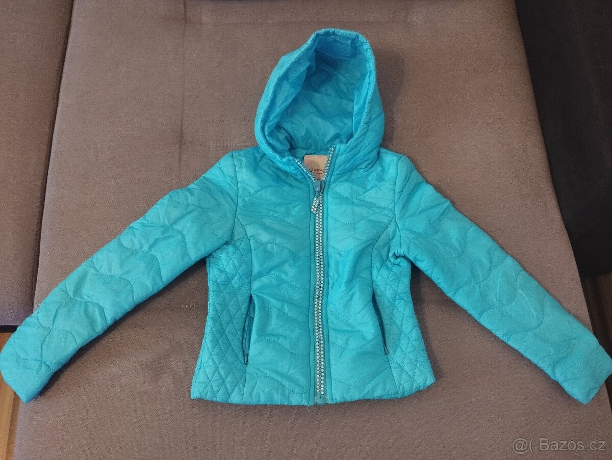 Krásná jarní bundička do pasu pro holky, hezká modrá barva, velikost 122/128.