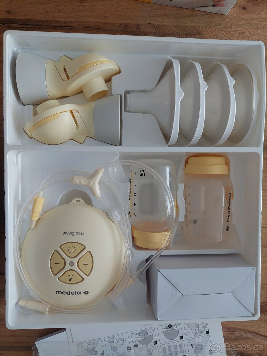 Odsávačka Swing Maxi je kompaktní a snadno použitelná elektrická odsávačka na dvě prsa. Technologie 2-Phase-Expression napodobuje přirozený rytmus sání dítěte. Je bez vad a poškození, chybí stojánky na lahvičky, ale i bez nich je odsávačka plně funkční! Navíc přidám náhradní lahvičky na skladování mateřského mléka (original medela) a sadu sáčků ke sterilizaci do mikrovlnné trouby (18ks) - každý sáček lze využít 20x. Preferuji osobní odběr, ale můžu i zaslat.