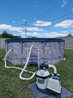 Nabízím téměř nový bazén Marimex průměr 3,66m a hloubka 1,22m, včetně schůdků, pískové filtrace, chemie a ostatních drobností..byl využívaný pouze necelé dva měsíce, od všeho mám doklady a tudíž je komplet v záruce..původní cena komplet 16000,-