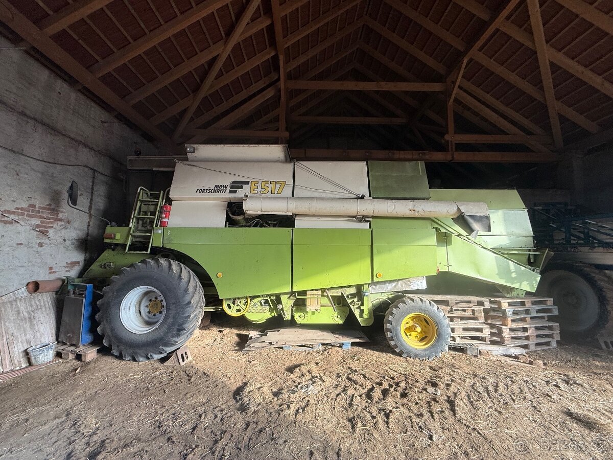 Prodám sklízecí mlátičku Mdw e 517.Plně funkční včetně originální elektroniky.Přidaný hektaroměr,snímač otáček bubnu a ventilátoru.Nový mlátící koš a mlatky.Zvýšený zásobník zrna, klimatizace,drtič,motor v super stavu.Pěkně pneumatiky(kombajn stojí na špalcích) celoročně pod střechou. Lišta 6,7M pohon kosy schumacher, kosa schumacher šroubovací, dvojprsty, řepkový předval,jeden aktivní dělič.Více informací po telefonu